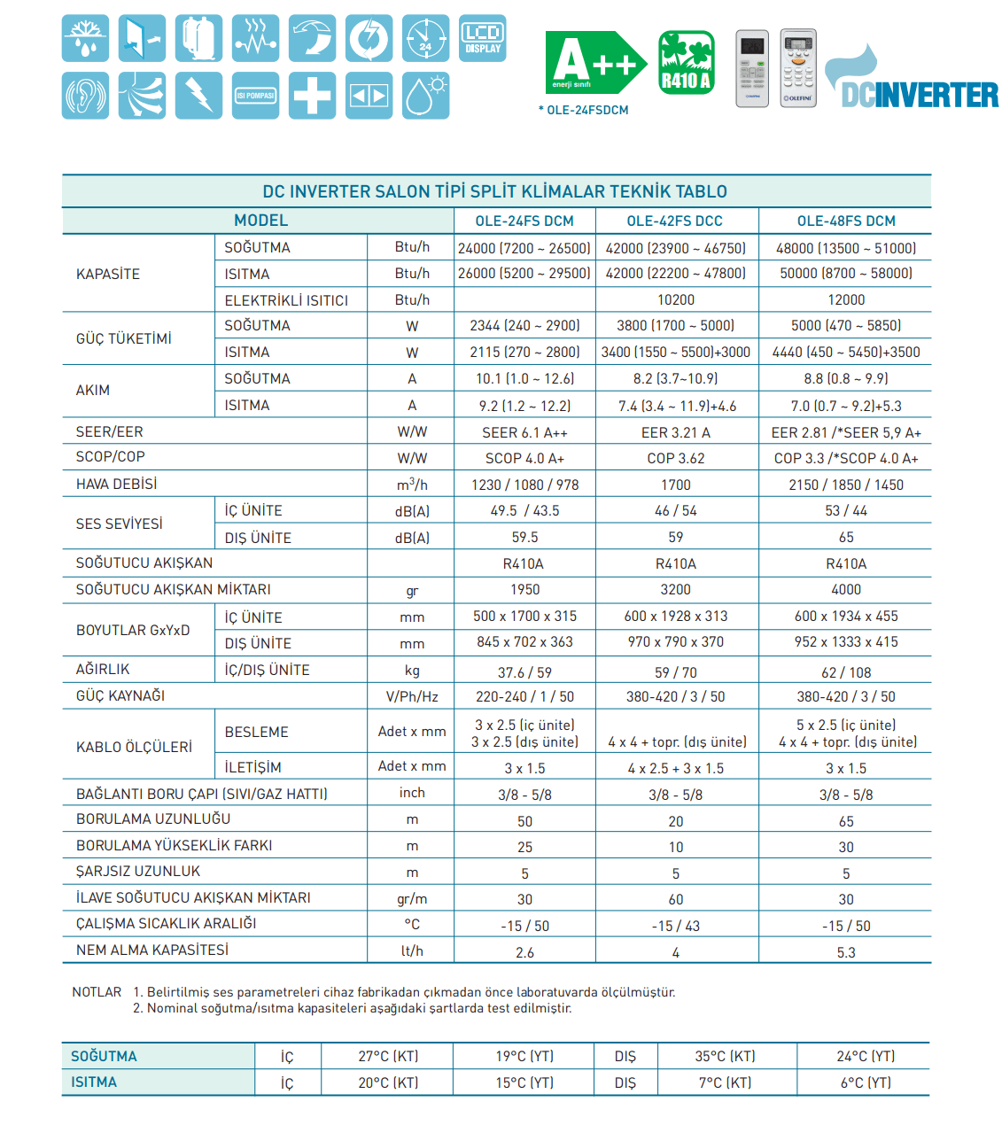 OLEFİNİ OLE-42 FS DC INVERTER SALON TİPİ KLİMA 42.000 BTU